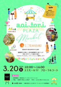 2026年3月20日(金・祝)に、エミフルMASAKI 1F フローラルコートにて、「aoitori PLAZA マーケット」を開催します!